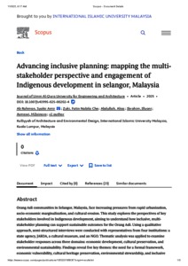 Ab Rahman, Syakir Amir and Che Zuki, Fatin Nabila and Abdullah, Alias and Ibrahim, Illyani and Asmawi, M. Zainora and Abdul Razak, Rajabi (2025) Advancing inclusive planning: mapping the multi-stakeholder perspective and engagement of Indigenous development in selangor, Malaysia. Journal of Umm Al-Qura University for Engineering and Architecture, 16 (3). pp. 1-9. ISSN 2731-6688 E-ISSN 1658-8150