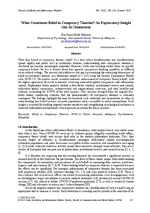 Mohd. Mahudin, Nor Diana (2025) What constitutes belief in conspiracy theories? An exploratory insight into its dimensions. Journal of Media and Information Warfare, 18 (2). pp. 135-150. ISSN 1985-563X E-ISSN 2821-3394