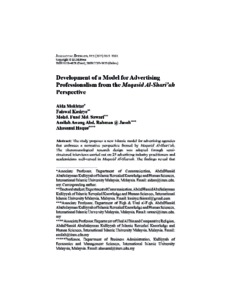 Mokhtar, Aida and Kasirye, Faiswal and Md. Sawari, Mohd. Fuad and Awang Abd. Rahman @ Jusoh, Amilah and Haque, A. K. M. Ahasanul (2025) Development of a model for advertising professionalism from the Maqasid Al-Shari’ah perspective. Intellectual Discourse, 33 (3). pp. 1071-1100. ISSN 0128-4878 E-ISSN 2289-5639