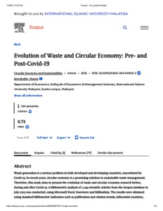 Uncontrolled Keywords: Bibliometric, Waste, Circular economy, Covid-19