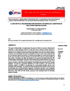 Haider, Anif Raza and Maulan, Suharni (2023) A conceptual framework for studying technology adoption of Malaysian SME retailers. The Asian Journal of Professional and Business Studies, 4 (2). pp. 1-23. E-ISSN 2716-666X