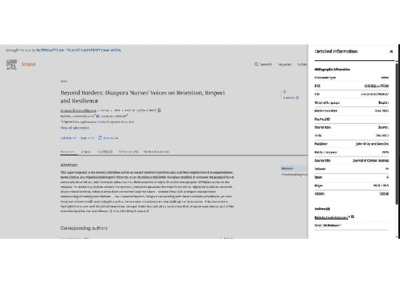 Faustino, Jerome Babate and Sa'at, Siti Fatimah (2025) Beyond borders: diaspora nurses' voices on retention, respect and resilience. Journal of Clinical Nursing, 35 (4). pp. 1094-1095. E-ISSN 1365-2702