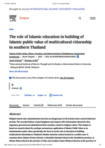 Ali Yusuf, Imtiaz Ahmed Shaukat and Thongin, Arthit (2025) The role of Islamic education in building of Islamic public value of multicultural citizenship in southern Thailand. In: Islamic Public Value: Theory, Practice, and Administration of Indigenous Cooperative Institutions. POLICY, ADMINISTRATIVE AND INSTITUTIONAL CHANGE . Edward Elgar Publishing Limited, Cheltenham, UK, pp. 281-307. ISBN 978 1 0353 3365 3
