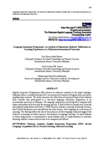 Abdul Rahim, Nor Elena and Md. Zamin, Ainul Azmin and Baharudin, Muhammad Danial (2025) Language immersion programme: an analysis of Indonesian students’ reflections on learning experiences at a Malaysian International University. The English Teacher, 54 (2). pp. 108-117. E-ISSN e-ISSN 2716-6406