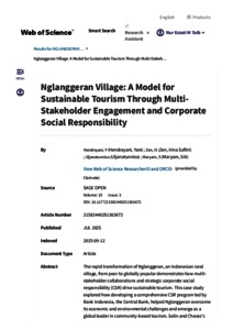Hendrayani, Yani and Zen, Irina Safitri and Uljanatunnisa, Uljanatunnisa and Maryam, Siti (2025) Nglanggeran village: a model for sustainable tourism through multi-stakeholder engagement and corporate social responsibility. Sage Open, 15 (3). pp. 1-16. E-ISSN 2158-2440