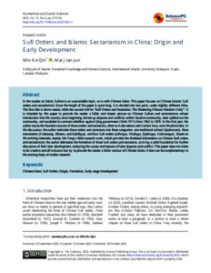 | Uncontrolled Keywords: | Chinese Islam, Sufi Orders, Origin, Formation, Early-stage Development |