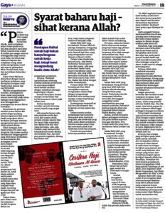 Abdul Rahim, Abdullah Bukhari (2025) Syarat baharu haji-sihat kerana Allah. Utusan Malaysia, Gaya (Suluh Wahyu) (14hb November 2025). p. 19. ISSN 2716-6694