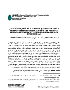 Sultan, Zobair and Zaroum, Abdulhamid Mohamed Ali (2025) أثر الإخلال بضمان سلامة المبيع: مقاربة مقاصدية بين الفقه الإسلامي والقانون البنغلاديشي = The impact of breaching the guarantee of sale integrity: a Maqasid-based approach between Islamic jurisprudence and Bangladeshi law. Al-Itqan: Journal of Islamic Sciences and Comparative Studies, 10 (2). pp. 42-64. E-ISSN 2600-8432