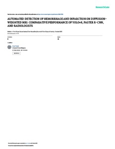 Anas, Tharek and Noralam, Noor Hayatul Al-akmal and Shamsuddin Perisamy, Rajeev and Ismail, Luthffi Idzhar and Hui, Soo Tze and Muda, Ahmad Sobri (2025) Automated detection of hemorrhage and infarction on diffusion-weighted mri: comparative performance of yolov8, faster r-cnn, and radiologists. Xi'an Shiyou Daxue Xuebao (Ziran Kexue Ban)/ Journal of Xi'an Shiyou University, Natural Sciences Edition, 68 (10). pp. 36-52. ISSN 1673-064X