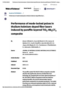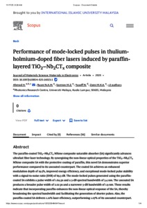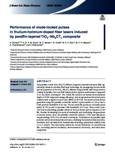 Ahmad, H. and Rusni, N.A.M. and Samion, M.Z. and Yusoff, N. and Zaini, M.K.A. and Mayzan, M.Z.H. and Thambiratnam, Kavintheran and Mahmoodin, Z. (2025) Performance of mode-locked pulses in thulium-holmium-doped fiber lasers induced by paraffin-layered TiO2–Nb2CTx composite. Journal of Materials Science: Materials in Electronics, 36 (31). pp. 1-22. ISSN 1674-4799 E-ISSN 1869-103X