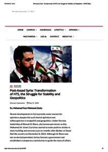 Post-Assad Syria: transformation of HTS, the struggle for stability and geopolitics.