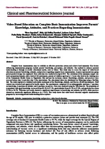 | Uncontrolled Keywords: | Attitudes, immunization, knowledge and practices, video-based education |