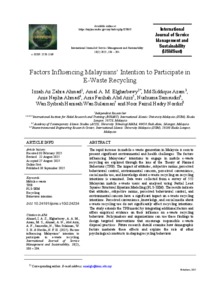 Ahmad, Izzah Az Zahra and Elgharbawy, Amal A.M. and Azam, Md Siddique and Ahmad, Anis Najiha and Abd Aziz, Anis Farihah and Samsudin, Nurhusna and Wan Sulaiman, Wan Syibrah Hanisah and Nordin, Noor Faizul Hadry (2025) Factors influencing Malaysians’ intention to participate in e-waste recycling. International Journal of Service Management and Sustainability, 10 (2). pp. 186-204. ISSN 0128-3057 E-ISSN 2550-1569