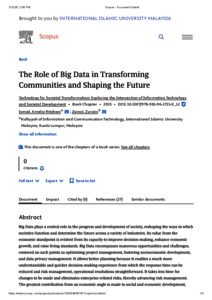 Ismail, Amelia Ritahani and Zainol, Zuraini (2025) The role of big data in transforming communities and shaping the future. In: Technology for Societal Transformation: Exploring the Intersection of Information Technology and Societal Development. Springer Nature Singapore, Singapore, pp. 195-204. ISBN 978-981-96-1720-3