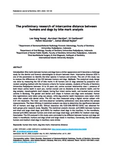 Lee Deng, Yeong and Dardjan, Murnisari and Susilawati, Sri and Oscandar, Fahmi and Rajion, Zainul Ahmad (2021) The preliminary research of intercanine distance between humans and dogs by bite mark analysis. Padjadjaran Journal of Dentistry, 33 (2). pp. 123-132. ISSN 1979-0201 E-ISSN 2549-6212