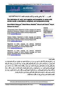 The restriction of 'only' and negation and exception in verses with similar words: a descriptive, analytical, and comparative study = القصر بـــِ "إنما" وبالنفي والاستثناء في الآيات المتشابهات الألفاظ: دراسة وصفية تحليلية مقارنية.