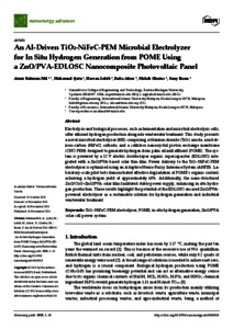 | Uncontrolled Keywords: | TiO2-NiFeC-PEM electrolyzer, POME, in situ hydrogen generation, ZnO/PVA solar cell power system |
