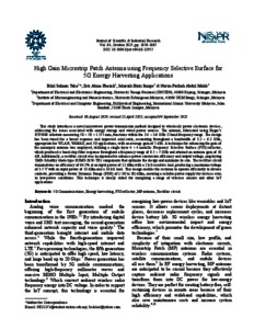 | Uncontrolled Keywords: | 5G communications, Energy harvesting, FSS reflector, MP antenna, Rectifier circuit |