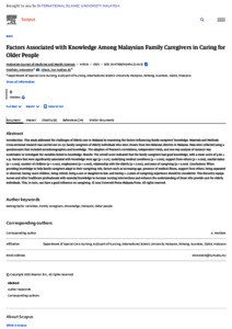 Factors associated with knowledge among Malaysian family caregivers in caring for older people