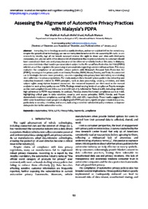 Mohd Shani, Nur Shahirah Hafizah and Mansor, Hafizah (2025) Assessing the alignment of automotive privacy practices with Malaysia's PDPA. International Journal on Perceptive and Cognitive Computing, 11 (1). pp. 122-134. E-ISSN 2462-229X
