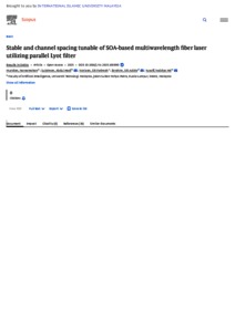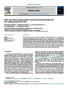 Muridan, Norasmahan and Sulaiman, Abdul Hadi and Norizan, Siti Fatimah and Ibrahim, Siti Azlida and Md Yusoff, Nelidya (2025) Stable and channel spacing tunable of SOA-based multiwavelength fiber laser utilizing parallel Lyot filter. Result in optics, 21 (NA). pp. 1-10. E-ISSN 2666-9501