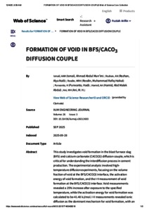 Ismail, Ahmad Abdul Mun'im and Rozhan, Alya Naili and Rosdin, Muhammad Rafiq Haikal and Purwanto, Hadi and Abdul Hamid, Abd. Malek and Ani, Mohd Hanafi (2025) Formation of void in BFS/CACO3 diffusion couple. IIUM Engineering Journal, 26 (3). pp. 386-396. ISSN 1511-788X E-ISSN 2289-7860