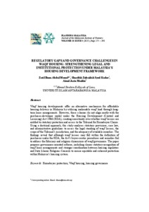 Abdul Manaf, Zati Ilham and Syed Abdul Kader, Sharifah Zubaidah and Maidin, Ainul Jaria (2025) Regulatory gaps and governance challenges in waqf housing: strengthening legal and institutional protection under Malaysia's housing development framework. Planning Malaysia, 23 (5). pp. 275-290. ISSN 1675-6215 E-ISSN 0128-0945