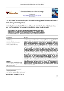 Maiddin, Siti Nurafiqah Amalina and Mohd Nor, Mohd Iqbal Haqim and Basir Khan, Mohammed Reyasudin and Magnadi, Rizal Hari and Nahid, Md. Mehzabul Hoque and Zainuddin, Ahmad Anwar (2025) The impact of business analytics on sales strategy effectiveness: evidence from malaysian companies. Journal of Advanced Research Design, 142 (1). pp. 1-10. E-ISSN 2289-7984