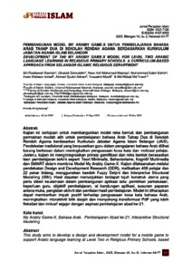 Kajian ini bertujuan untuk membangunkan model reka bentuk dan pembangunan permainan mudah alih untuk pembelajaran bahasa Arab Tahap Dua di Sekolah Rendah Agama berdasarkan Kurikulum Jabatan Agama Islam Selangor (JAIS). Pendekatan tradisional yang berpusatkan guru dalam pengajaran bahasa Arab dilihat kurang berkesan dalam meningkatkan penguasaan kosa kata dan motivasi pelajar. Justeru, kajian ini mengintegrasikan prinsip gamifikasi dan reka bentuk berasaskan teori pembelajaran terkini seperti Teori Minimalis, Behaviorisme, Kognitif Multimedia dan SMART dalam membina Model My Arabiy Game-X. Kajian dilaksanakan melalui pendekatan Design and Development Research (DDR), melibatkan 408 pelajar dan 22 pakar bidang, menggunakan kaedah Fuzzy Delphi dan Interpretive Structural Modelling (ISM). Hasil dapatan menunjukkan terdapat tujuh konstruk utama yang perlu diberi keutamaan dalam pembangunan aplikasi iaitu: pemilihan perkakasan, keperluan guru, objektif pembelajaran, isi kandungan aplikasi, susunan paparan antara muka, pengisian aktiviti dan penilaian hasil pembelajaran. Model ini diharapkan dapat memberikan impak positif terhadap penguasaan kosa kata bahasa Arab, meningkatkan interaktiviti bilik darjah dan menyokong transformasi PdP yang lebih fleksibel dan inklusif sejajar dengan aspirasi pembelajaran abad ke-21