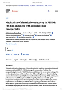 Ahmad Shahrim, Nur’Aishah Ahmad and Ahmad, Zuraida and Azman, Amelia Wong and Buys, Yose Fachmi and Sarifuddin, Norshahida (2025) Mechanism of electrical conductivity in PEDOT: PSS film enhanced with colloidal silver nanoparticles. In: 2nd International Congress on Engineering and Technology, ICET 2024, 4-5 September 2024, Shah Alam.