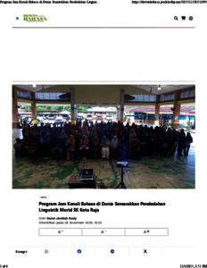 Rosly, Nurul Jamilah (2025) Program Jom Kenali Bahasa di Dunia Semarakkan Pendedahan Linguistik Murid SK Kota Raja. Dewan Bahasa, 12 (1). pp. 4-6.