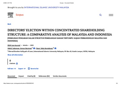 Mohd. Sulaiman, Aiman @ Nariman and Dewi, Yetty Komalasari (2025) Directors’ election within concentrated shareholding structure: a comparative analysis of Malaysia and Indonesia. IIUM Law Journal, 33 (2). pp. 159-204. ISSN 0128-2530 E-ISSN 2289-7852
