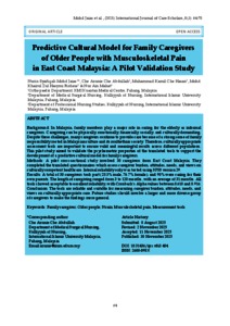 Mohd Jaias, Nurin Syafiqah and Che Abdullah, Che Azunie and Che Hasan, Muhammad Kamil and Firdaus, Mohd Khairul Zul Hasymi and Mahat, Nur Ain (2025) Predictive cultural model for family caregivers of older people with musculoskeletal pain in East Coast Malaysia: a pilot validation study. International Journal of Care Scholars, 8 (3). pp. 64-70. ISSN 2600-898X