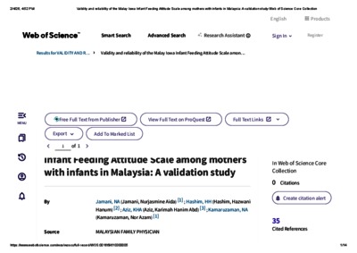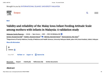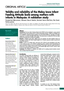 Jamani, Nurjasmine Aida and Hashim, Hazwani Hanum and Abd. Aziz, Karimah Hanim and Kamaruzaman, Nor Azam (2025) Validity and reliability of the Malay Iowa Infant Feeding Attitude Scale among mothers with infants in Malaysia: a validation study. Malaysian Family Physician, 20 (NA). pp. 1-10. ISSN 1985-207X E-ISSN 1985-2274