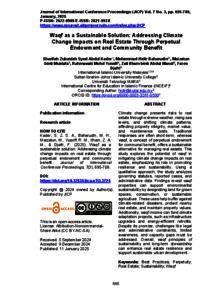 Syed Abdul Kader, Sharifah Zubaidah and Baharudin, Mohammad Hidir and Mustafa, Maizatun and Mohd Yusoff, Rahmawati and Abdul Manaf, Zati Ilham and Djafri, Fares (2025) Waqf as a sustainable solution: addressing climate change impacts on real estate through perpetual endowment and community benefit. Journal of International Conference Proceedings, 7 (3). pp. 695-709. ISSN 2622-0989 E-ISSN 2621-993X