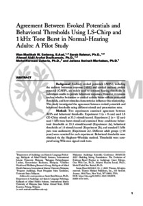 | Uncontrolled Keywords: | ABR, CAEP, LS CE-chirp, 1 kHz tone burst, behavioral hearing thresholds |
