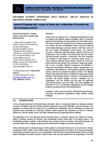 Abdul Rahman, Julaila and Mansor, Mazlina and Raja Abdul Rahman, Raja Intan Suhaylah (2025) Exploring student experiences with product line-up analysis in industrial design curriculum. Journal of Architecture, Planning and Construction Management (JAPCM), 15 (2). pp. 80-88. ISSN 2231-9514 E-ISSN 2462-2222