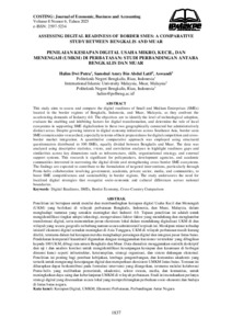 This study aims to assess and compare the digital readiness of Small and Medium Enterprises (SMEs) located in the border regions of Bengkalis, Indonesia, and Muar, Malaysia, as they confront the accelerating demands of Industry 4.0. The objectives are to identify the level of technological adoption, evaluate the enabling and inhibiting factors for digital transformation, and determine the role of local ecosystems in supporting SME digitalization in these two geographically connected but administratively distinct areas. Despite growing interest in digital economy initiatives across Southeast Asia, border-area SMEs remain under-researched, especially in terms of their preparedness for digital competition and cross-border market integration.Aquantitative comparative approach was employed using structured questionnaires distributed to 100 SMEs, equally divided between Bengkalis and Muar. The data was analyzed using descriptive statistics, t-tests, and correlation analyses to highlight readinessgaps and similarities across key dimensions such as infrastructure, skills, organizational strategy, and external support systems.This research is significant for policymakers, development agencies, and academic communities interested in narrowing the digital divide and strengthening cross-border SME ecosystems. The findings are expected to contribute to the formulation of targeted interventions, particularly through Penta-helix collaboration involving government, academia, private sector, media, and communities, to boost SME competitiveness and sustainability in border regions.The study underscores the need for localized digital strategies that recognize socio-economic and cultural differences across national boundaries