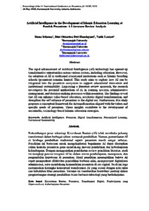 Izfanna, Duna and Handayani, Dini Oktarina Dwi and Lestari, Tutik (2025) Artificial intelligence in the development of Islamic education learning at Pondok Pesantren: a literature review analysis. Proceeding of International Conference on Islamic Boarding School, 2 (1). pp. 1-12. E-ISSN 3090-3467