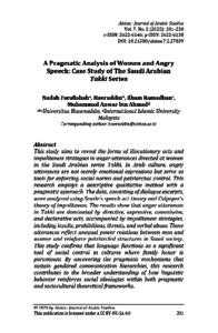 Farafishah, Nailah and Haeruddin, Haeruddin and Haeruddin, Ilham Ramadhan and Ahmad, Muhammad Anwar (2025) A pragmatic analysis of women and angry speech: case study of the Saudi Arabian Takki series. Alsina: Journal of Arabic Studies, 7 (2). pp. 201-230. ISSN 2622-6138 E-ISSN 2622-6146