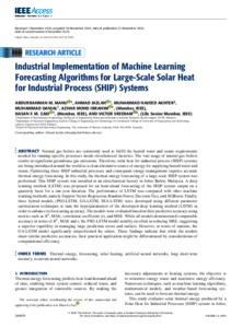 Industrial implementation of machine learning forecasting algorithms for large-scale Solar Heat for Industrial Process (SHIP) Systems.