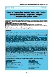 Hasan, Haliza and Anuar, Ain Nadhrah and Yahya, Syahira and Heni Dwi Windarwati, Heni Dwi Windarwati and Evi Harwiati Ningrum, Evi Harwiati Ningrum (2025) Level of depression, anxiety, stress, and coping strategies of Malay caregivers caring for children with special needs. International Journal Care Scholars, 8 (3). pp. 36-47. ISSN 2600-898X
