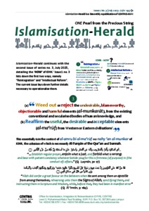 Islamisation-Herald continues with the second issue of series no. 3, July 2025, detailing the ‘HOW’ of IOHK. 1 Issue 1 no. 3 lists down the first two ways, namely “Reintegration” and “Intellectual Reform”. The current issue lays down further details necessary to operationalise them.