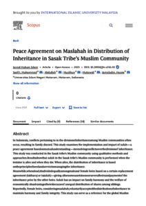Syafi’i, Muhammad and Abdullah, Abdullah and Muslihun, Muslihun and Mutawali, Mutawali and Jamaludin, Husna (2025) Peace agreement on Maslahah in distribution of inheritance in Sasak Tribe’s Muslim community. Jurnal Hukum Islam, 23 (1). pp. 73-104. ISSN 1829-7382 E-ISSN 2502-7719