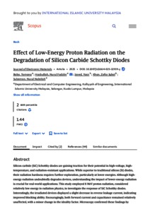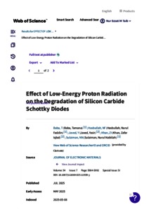 Baba, Tamana and Hasbullah, Nurul Fadzlin and Javed, Yasir and Khan, Zafar Iqbal and Sulaiman, Nurul Nabiilah (2025) Effect of low-energy proton radiation on the degradation of silicon carbide Schottky diodes. Journal of Electronic Materials, 54 (7). pp. 5984-5992. ISSN 0361-5235 E-ISSN 1543-186X