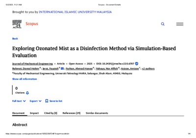 Rahmat, Danial Hakim and Jerai, Fauziah and Farhan, Ahmad Hanaa’ and Yahaya, Nor Afifah and Azizan, Amizon and Abdul Halim, Amanatuzzakiah and Md Yunos, Khairul Faezah (2025) Exploring ozonated mist as a disinfection method via simulation-based evaluation. Journal of Mechanical Engineering, 22 (3). pp. 169-182. E-ISSN 2550-164X
