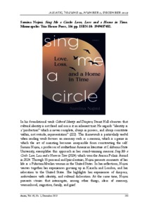 Ramlan, Wan Nur Madiha (2025) Samina Najmi. Sing me a Circle: Love, Loss, and a Home in Time. Minneapolis: Trio House Press, 336 pp. ISBN-10: 1949487482. Asiatic, 19 (2). pp. 202-204. ISSN 1985-3106