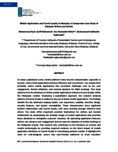 Muhammad Kyrie Zariff, Mohamed and Nur Shuhadah, Mohd and Muhammad Fadhlullah, Najimudin (2025) Mobile Applications and Tourist Loyalty in Malaysia: A Comparative Case Study of Malaysia Airlines and AirAsia. Journal of Contemporary Tourism and Hospitality Research, 1 (1). pp. 94-112. E-ISSN 31226744
