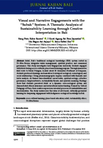 Kaler Surata, Sang Putu and I Gusti Agung, Sri Rwa Jayantini and Arjaya, Ida Bagus Ari and Zen, Irina Safitri (2025) Visual and narrative engagements with the “Subak” system: a thematic analysis of sustainability learning through creative interpretation in Bali. Jurnal Kajian Bali, 15 (3). pp. 1300-1330. ISSN 2088-4443 E-ISSN 2580-0698