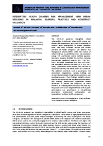 Abdul Rahim, `Ainatul Fathiyah and Zen, Irina Safitri and Abdullah, Alias (2025) Integrating health disaster risk management into urban resilience in Malaysia: barriers, practices and construct validation. Journal of Architecture, Planning & Construction Management, 15 (2). pp. 124-144. ISSN 2231-9514 E-ISSN 2462-2222